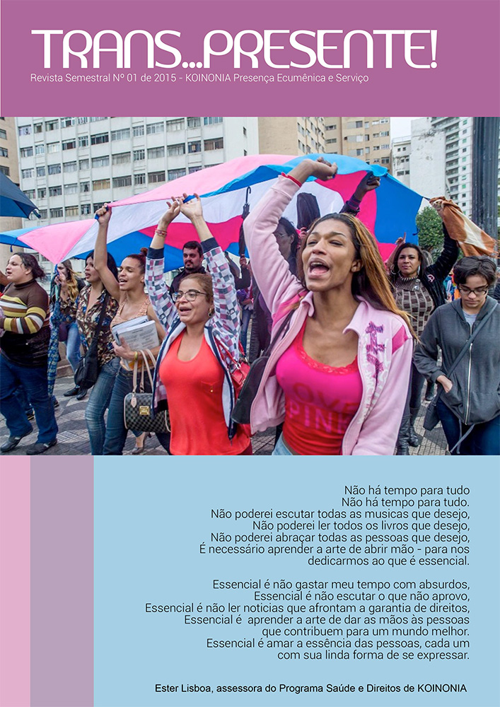 O material “TRANS…Presente!” dá voz aos participantes desse rico processo de 6 meses de coordenação do programa Transcidadania, com foco em Direitos Humanos e Cidadania. O conteúdo aborda desde o que foi a Formação em Direitos Humanos, Cidadania e Democracia, até os impactos que ele trouxe nas vidas das/dos participantes do programa, bem como dos professores. Este material é o agradecimento de KOINONIA pela parceira e relação de cumplicidade, esperança e fé.